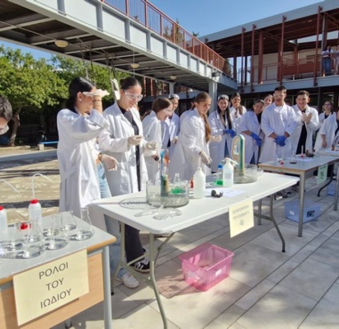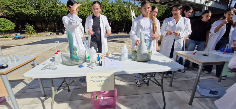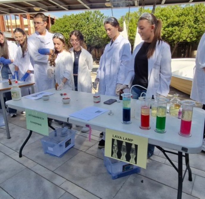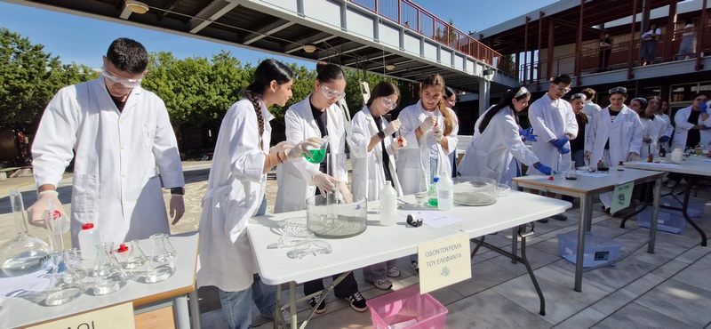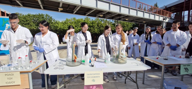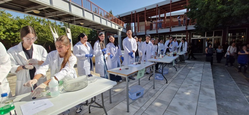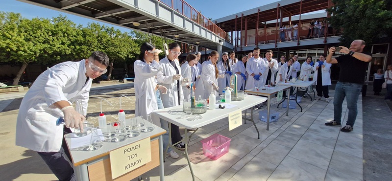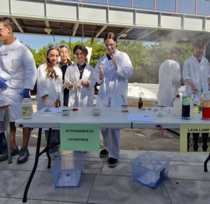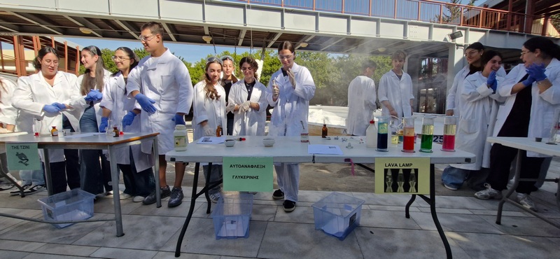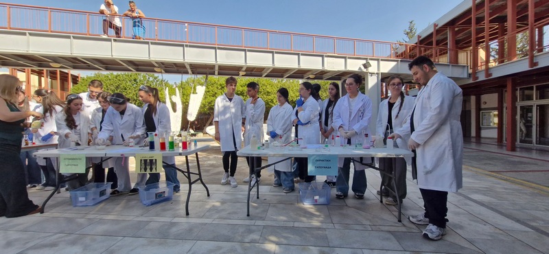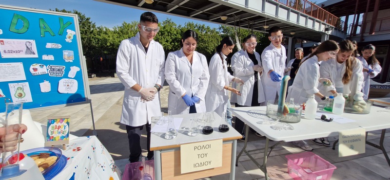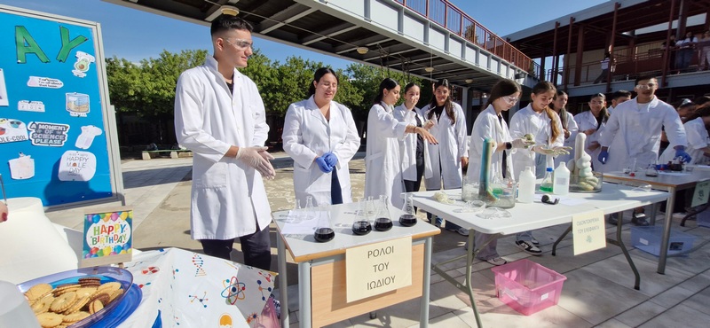 Οι Χημικοί γιορτάζουν την ημέρα του Mole.Επίδειξη πειραμάτων από ομάδες μαθητών στο άτριο του Σχολείου.