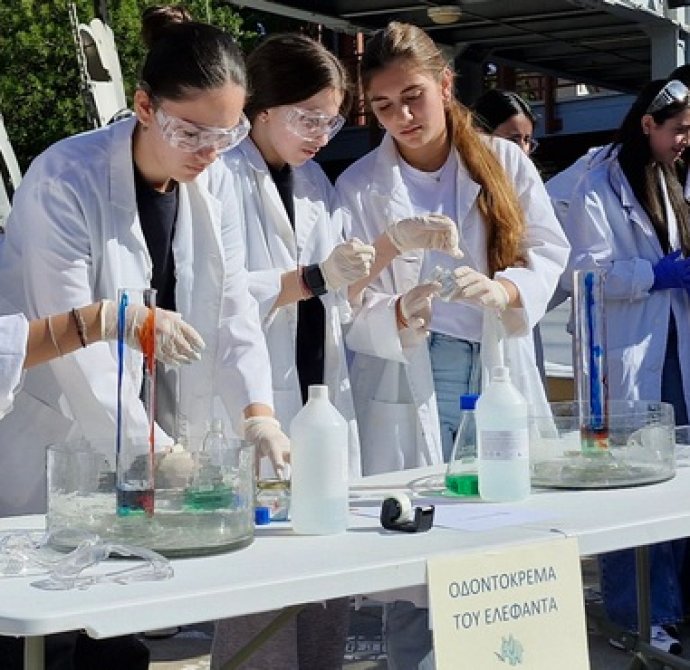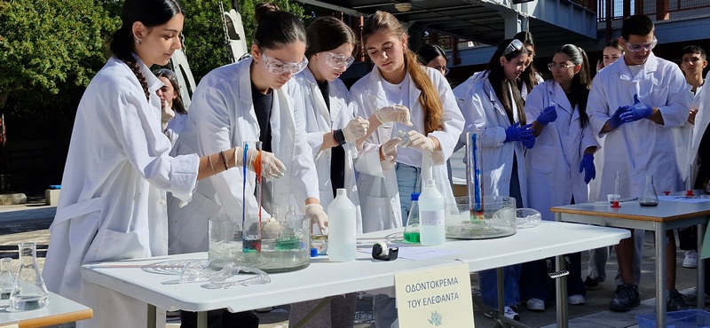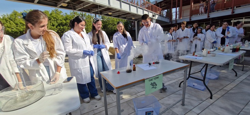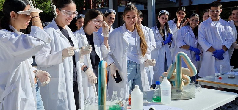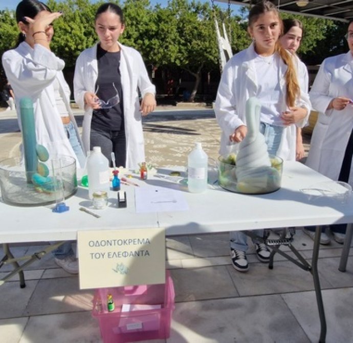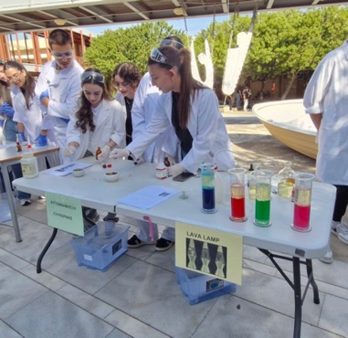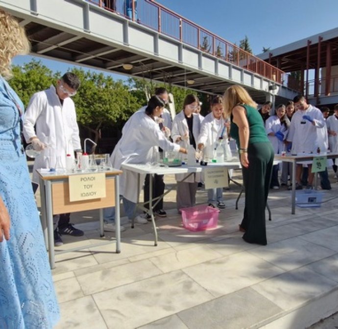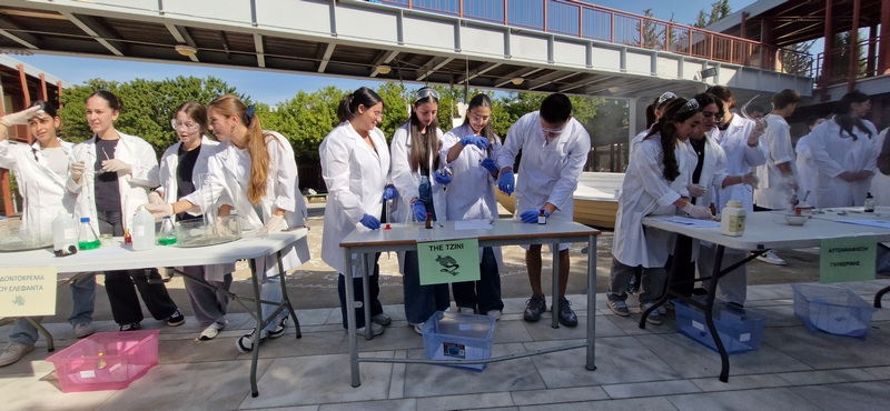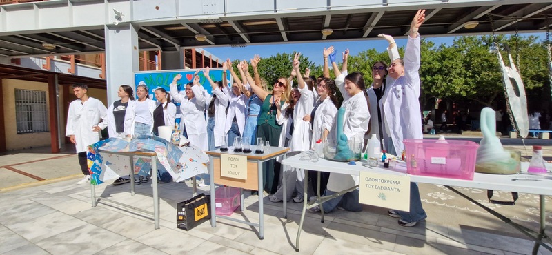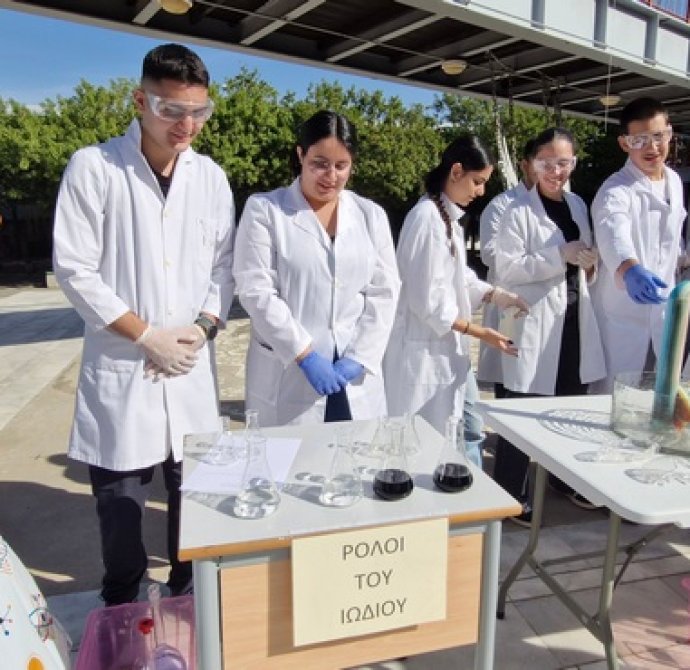 Οι Χημικοί γιορτάζουν την ημέρα του Mole.Επίδειξη πειραμάτων από ομάδες μαθητών στο άτριο του Σχολείου.