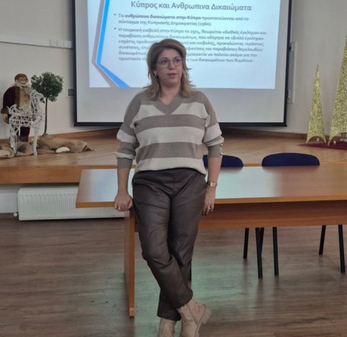 Όσον αφορά την πατρίδα μας, αναφέρθηκε πως τα ανθρώπινα δικαιώματα προστατεύονται συνταγματικά, αλλά η τουρκική εισβολή του 1974 αποτελεί σημαντική και συνεχιζόμενη παραβίαση. Η εκδήλωση έκλεισε με το ερώτημα αν έχει επέλθει η «δύση» των ανθρωπίνων δικαιωμάτων και με το μήνυμα ότι απαιτούνται πράξεις και όχι λόγια για την προστασία τους.