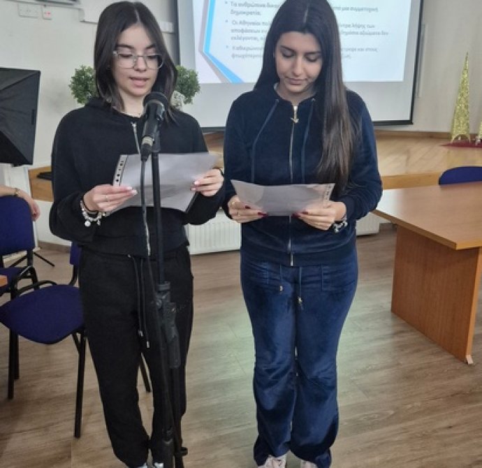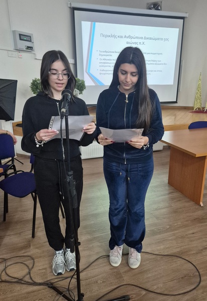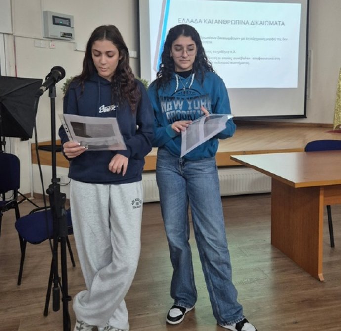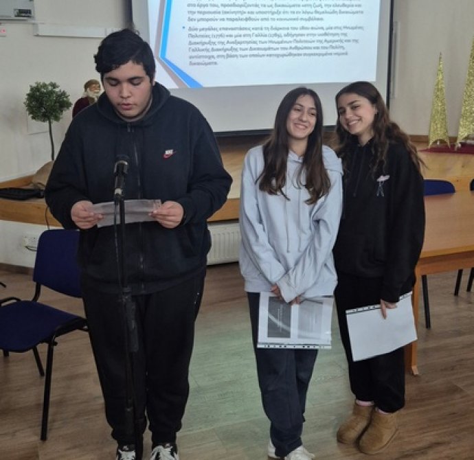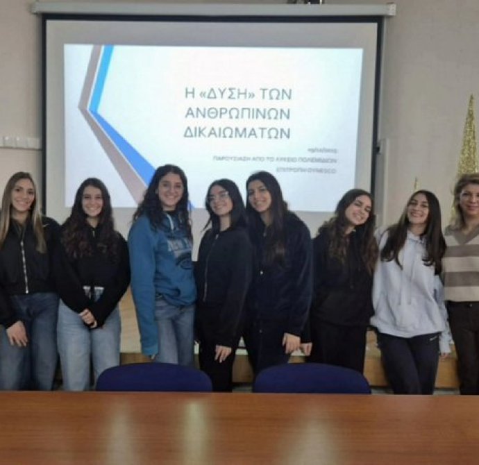 Την Τρίτη, 9 Δεκεμβρίου 2025, παραμονή της επετείου της Διακήρυξης των Ανθρωπίνων Δικαιωμάτων από τη Γενική Συνέλευση του ΟΗΕ (10/12/1948), η Επιτροπή Ουνέσκο πραγματοποίησε εκδήλωση με τίτλο «Η «Δύση» των Ανθρωπίνων Δικαιωμάτων». Η εκδήλωση ήταν διανθισμένη με βίντεο σχετικά με τα ανθρώπινα δικαιώματα και περιλάμβανε παρουσιάσεις από μαθητές/τριες και από τις τρεις τάξεις του Λυκείου Πολεμιδιών. Την εκδήλωση παρακολούθησαν τα τμήματα Α22, Β21, Β33 και Γ52.