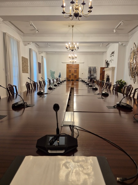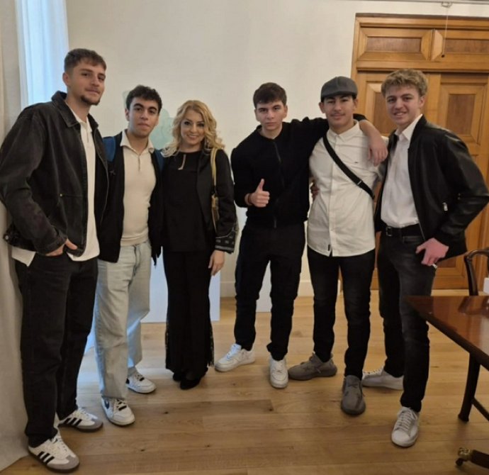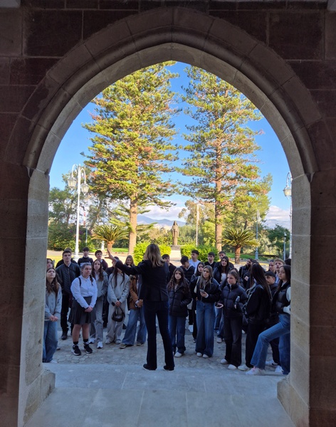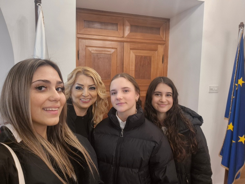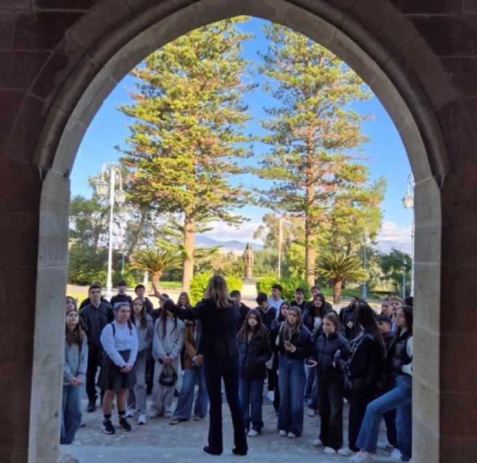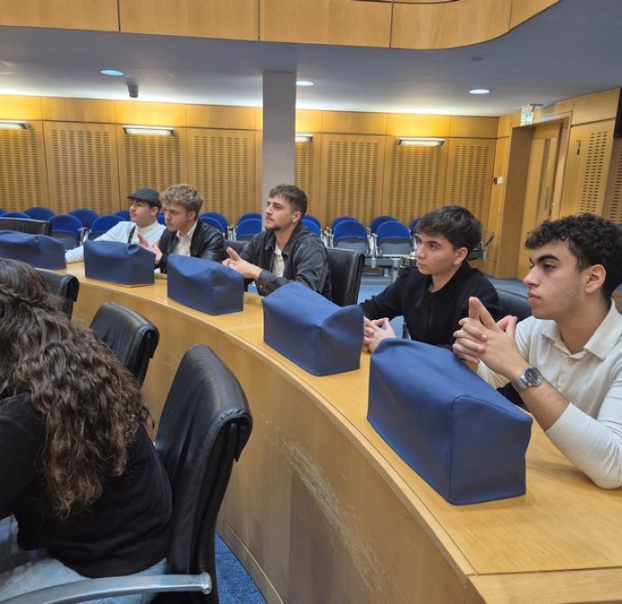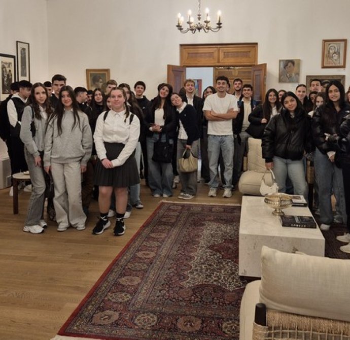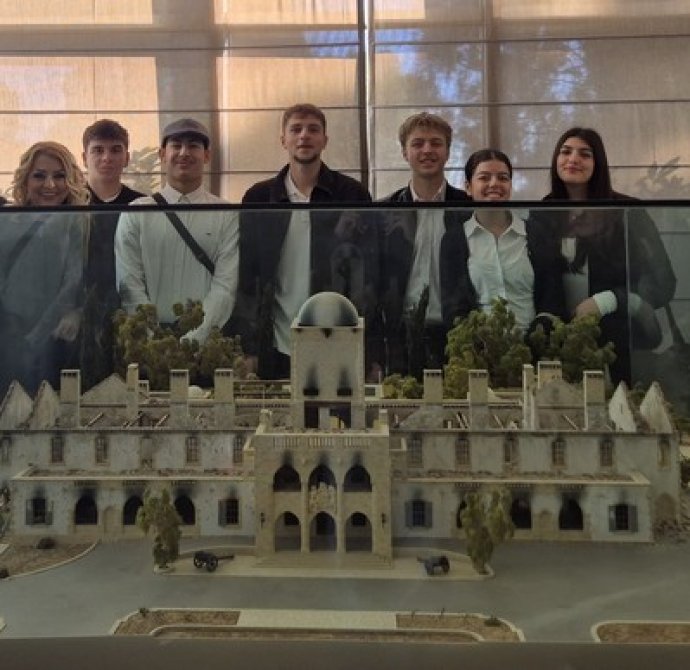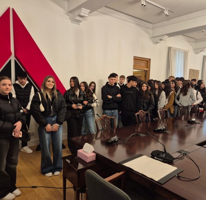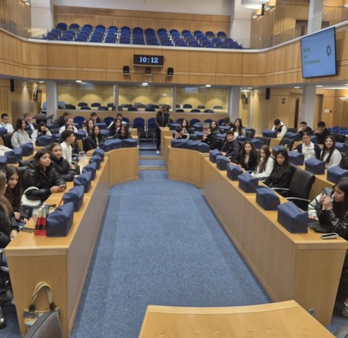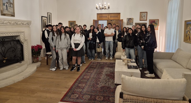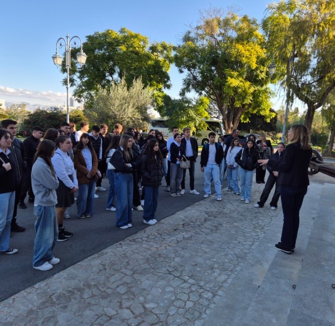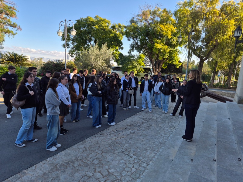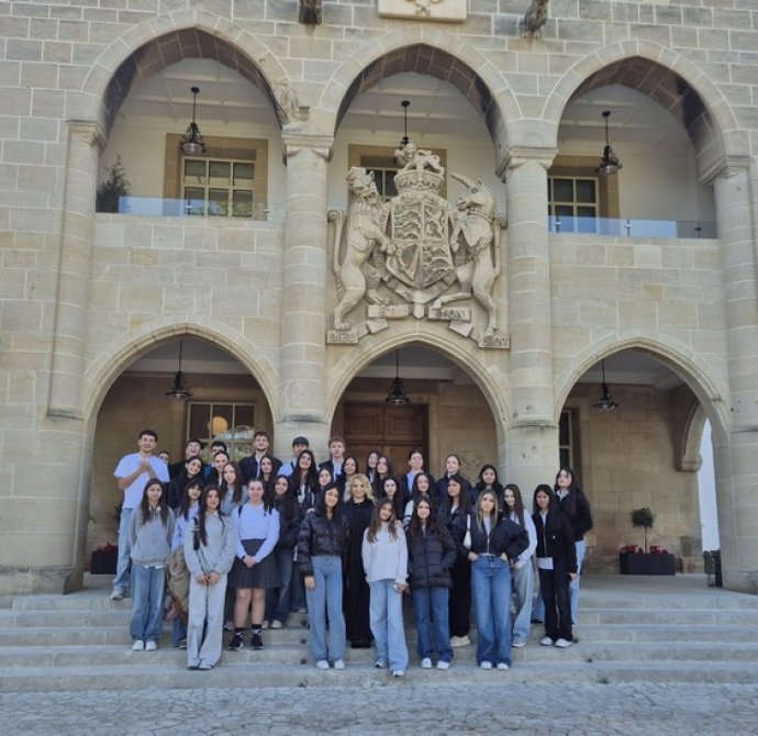 Στο Προεδρικό, τους μαθητές/τριες ξενάγησε η Λειτουργός, υπεύθυνη για τις ξεναγήσεις, κ. Λιάνα Σίππη, την οποία ευχαριστούμε θερμά. Η κ. Σίππη, παρουσίασε λεπτομερώς την αρχιτεκτονική και την ιστορία του Προεδρικού Μεγάρου (κτήριο και Πρόεδροι) και επικεντρώθηκε στα γεγονότα του 1974, οδηγώντας τους μαθητές/τριες στον χώρο όπου έγινε το πραξικόπημα. Αργότερα, απαντήθηκαν οι ερωτήσεις των μαθητών/τριών προς τον Πρόεδρο της Δημοκρατίας, κ. Νίκο Χριστοδουλίδη σχετικά με την Κυπριακή Προεδρία. Συγκεκριμένα, οι μαθητές/τριες ρώτησαν για τις προτεραιότητες της Κυπριακής Προεδρίας στον τομέα της προστασίας της πολιτιστικής κληρονομιάς, αλλά και για τις πρωτοβουλίες που προτίθεται να αναλάβει η Κύπρος για την ενίσχυση της κοινής ευρωπαϊκής πολιτιστικής ταυτότητας. Επιπλέον, οι μαθητές/τριες ενδιαφέρθηκαν να μάθουν με ποιον τρόπο η Κυπριακή Προεδρία θα συμβάλει στην ενίσχυση της επιστημονικής συνεργασίας στην Ευρωπαϊκή Ένωση, ιδιαίτερα στους τομείς της κλιματικής επιστήμης, της ωκεανογραφίας και των νέων τεχνολογιών, καθώς και αν θα υποστηριχθούν δράσεις για την ηθική και υπεύθυνη χρήση της τεχνητής νοημοσύνης σύμφωνα με τα πρότυπα της UNESCO. Περαιτέρω, έθεσαν ερωτήματα σχετικά με το αν υπάρχει πρόθεση να προβληθεί το Κυπριακό ως παράδειγμα συνεργασίας, συμφιλίωσης και πολιτιστικής προστασίας σε ευρωπαϊκό επίπεδο.
