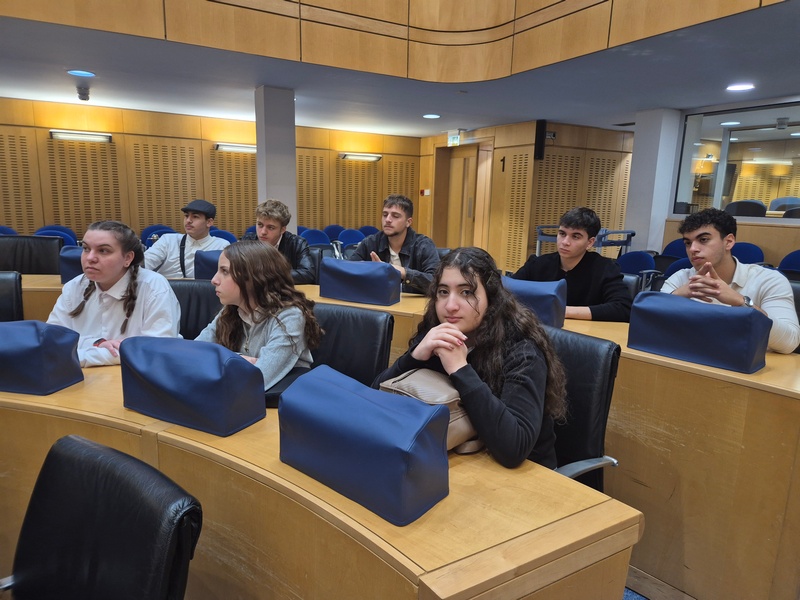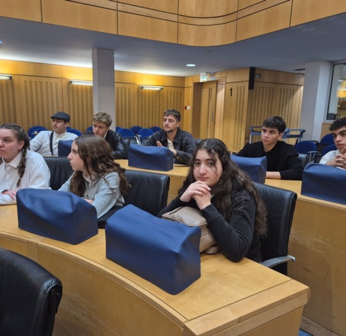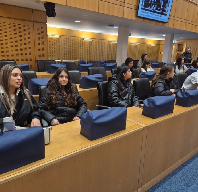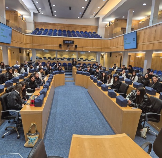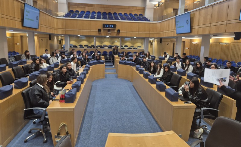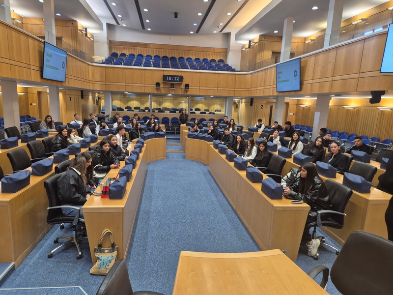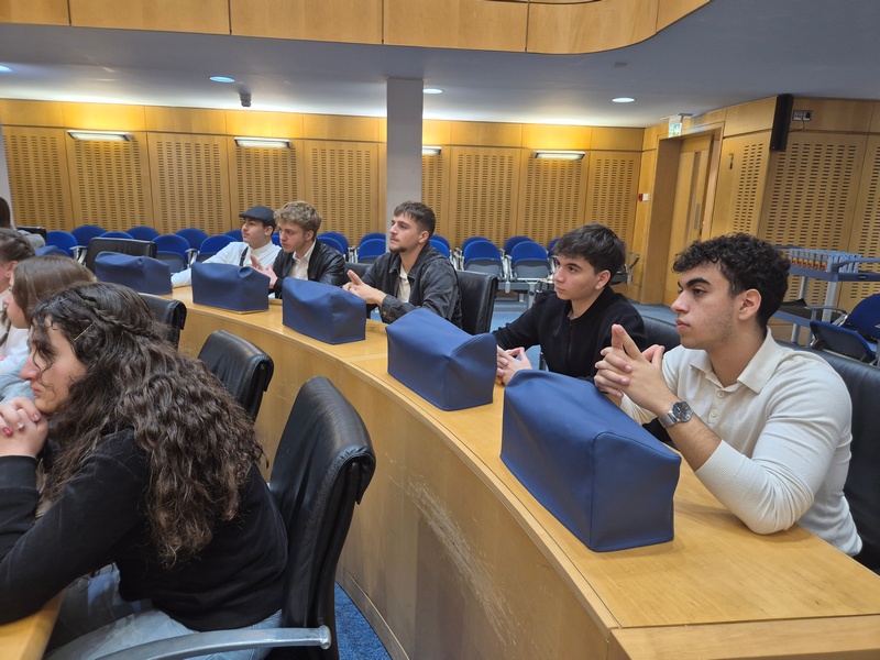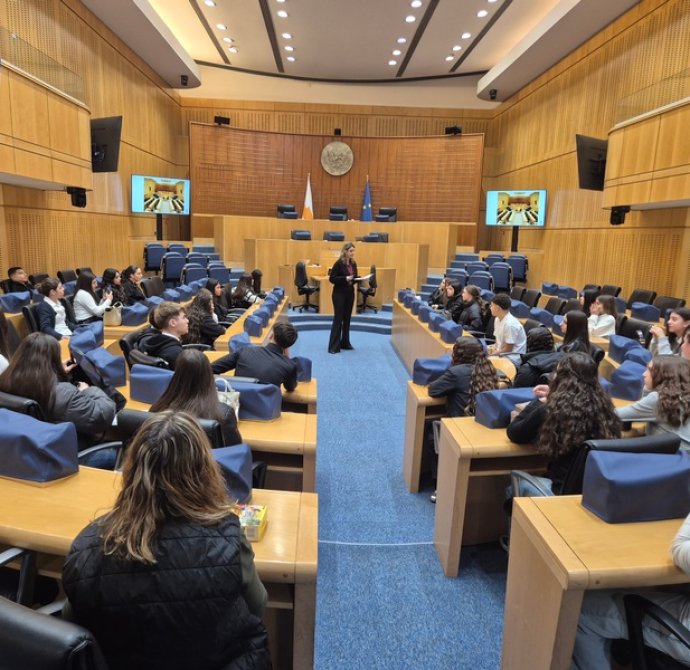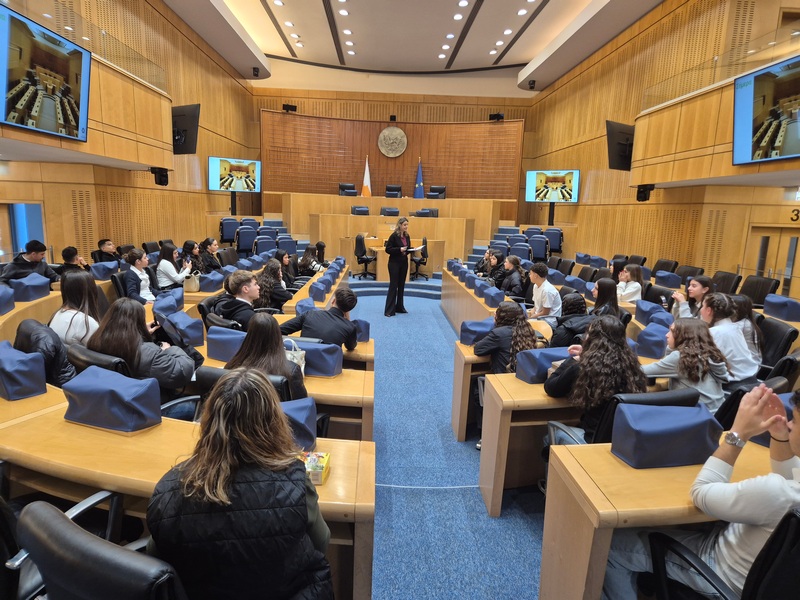 Στη Βουλή των Αντιπροσώπων, την ξενάγηση πραγματοποίησε η Φιλόλογος και Λειτουργός της Υπηρεσίας Μελετών, Ερευνών και Εκδόσεων, κ. Σταυρούλα Γρηγορίου Θωμά, την οποία επίσης ευχαριστούμε θερμά. Η ξενάγηση αφορούσε τον ρόλο και την ιστορία του Κοινοβουλίου (κτήριο, πρώτοι Πρόεδροι κλπ.). Αρχικά, παρουσιάστηκαν οι τρεις εξουσίες (Εκτελεστική, Νομοθετική, Δικαστική) και στη συνέχεια δόθηκε έμφαση στη Νομοθετική εξουσία (Βουλή), στις αρμοδιότητες και τα καθήκοντά της, στο πώς φτάνει ένα νομοσχέδιο στην ολομέλεια κλπ. Μετέπειτα, απαντήθηκαν οι ερωτήσεις των μαθητών/τριών προς την Πρόεδρο της Βουλής, κ. Αννίτα Δημητρίου. Οι μαθητές/τριες ρώτησαν για τη νομοθεσία που αφορά την προστασία της πολιτιστικής κληρονομιάς και ειδικότερα για το πώς η Βουλή ενσωματώνει τις διεθνείς συμβάσεις της UNESCO στην κυπριακή νομοθεσία, αν υπάρχει επικαιροποίηση των νόμων για την προστασία μνημείων, της άυλης πολιτιστικής κληρονομιάς και φυσικών τοπίων, καθώς και ποια μέτρα λαμβάνονται για την προστασία της κληρονομιάς σε περιοχές που απειλούνται από την ανάπτυξη ή την κλιματική αλλαγή. Επιπρόσθετα, ρώτησαν πώς η Βουλή στηρίζει τα προγράμματα και τις εθνικές επιτροπές της UNESCO, όπως η Εθνική Επιτροπή UNESCO Κύπρου. Εν κατακλείδι, έθεσαν ερωτήματα σχετικά με την προστασία του πολιτισμού σε περιόδους κρίσης και τη θέση της Βουλής απέναντι στην παράνομη διακίνηση αρχαιοτήτων.