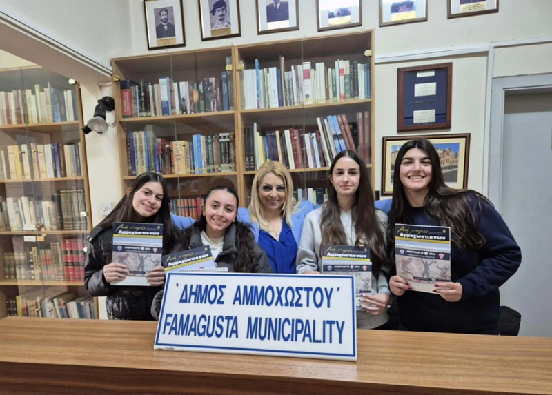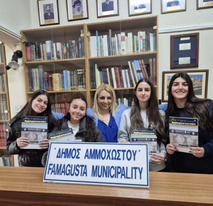 Οι μαθήτριες ενημερώθηκαν για το πολύτιμο αρχειακό υλικό και τις συλλογές βιβλίων, για τις διαρκείς προσπάθειες διατήρησης και ανάδειξης της πολιτιστικής κληρονομιάς της Αμμοχώστου και ήρθαν σε επαφή με την ιστορία της πόλης πριν και μετά την κατοχή, κατανοώντας βαθύτερα τη σημασία της γνώσης, της ιστορικής μνήμης και της συλλογικής ευθύνης. Στο πλαίσιο της επίσκεψης, στις μαθήτριες προσφέρθηκαν το περιοδικό και το ημερολόγιο του Δήμου Αμμοχώστου για το 2026, τα οποία είναι εμπλουτισμένα με ιστορικά στοιχεία, αφιερώματα και φωτογραφίες που αναδεικνύουν την πολιτιστική ταυτότητα και την ιστορική πορεία της πόλης. Μέσα από τις σελίδες του περιοδικού με τίτλο «Δια χειρός Αμμοχωστιανών», προβάλλονται μνήμες, γεγονότα και εικόνες της Αμμοχώστου πριν την κατοχή, καθώς και μηνύματα ελπίδας και προσμονής. Το ημερολόγιο 2026, με τα συνθήματα «Θυμάμαι και μαθαίνω» και «Η αληθινή ευτυχία βρίσκεται στις αναμνήσεις και στις ελπίδες» στην πρώτη και την τελευταία του σελίδα, είναι αφιερωμένο στις δύο ποδοσφαιρικές ομάδες της Αμμοχώστου, Ανόρθωση και Νέα Σαλαμίνα, τιμώντας τη δράση και την ιστορική τους πορεία πριν το 1974.