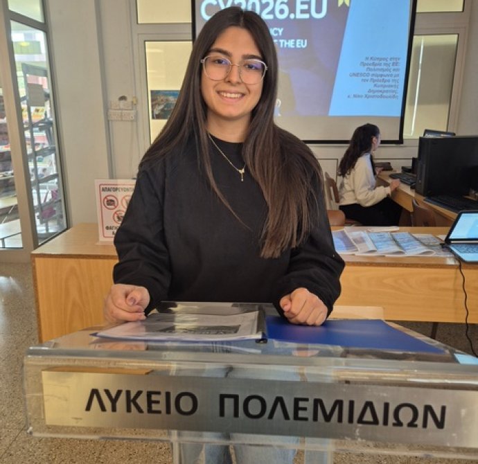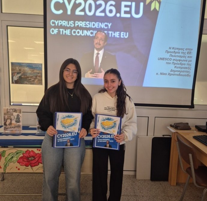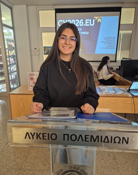 Η Επιτροπή Ουνέσκο του Λυκείου Πολεμιδιών, ρώτησε τον Πρόεδρο της Δημοκρατίας, κ. Νίκο Χριστοδουλίδη, τις δράσεις που πρόκειται να πραγματοποιήσει, οι οποίες αφορούν τα θέματα με τα οποία ασχολείται η Επιτροπή Ουνέσκο, κατά τη διάρκεια της προεδρίας της Κύπρου στο Ευρωπαϊκό Συμβούλιο. Παραθέτουμε περιληπτικά τις απαντήσεις του, οι οποίες παρουσιάστηκαν στη Βιβλιοθήκη του Σχολείου μας, την Τρίτη 13 Ιανουαρίου 2026, από τις μαθήτριες Αντωνίου Δέσποινα και Παπαθεοχάρους Στυλιάνα, του τμήματος Β32.