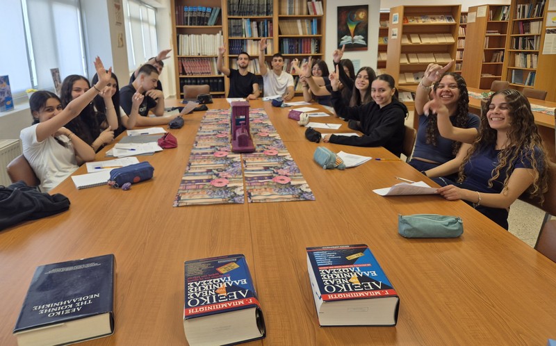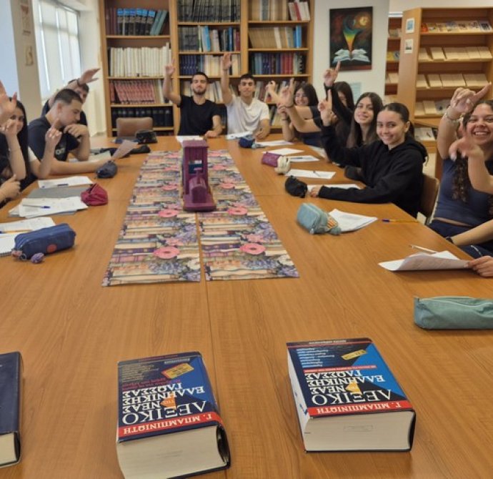 Οι μαθητές/τριες του τμήματος Β32, πήραν για λίγο τον ρόλο του εκπαιδευτικού, στάθηκαν μπροστά στους συμμαθητές/τριές τους και προσπάθησαν να διδάξουν, μετατρέποντας τη Βιβλιοθήκη σε έναν δημιουργικό χώρο ανταλλαγής γνώσεων και εμπειριών! Με αυτόν τον τρόπο, είχαν την ευκαιρία να κατανοήσουν καλύτερα τις προσπάθειες που καταβάλλει καθημερινά ο/η εκπαιδευτικός, να αντιληφθούν σε βάθος το μέγεθος της ευθύνης και της αγάπης του/της, αλλά και να αντιληφθούν τη δημιουργική ικανοποίηση και χαρά που συνοδεύουν το έργο της διδασκαλίας και της μετάδοσης της γνώσης. Παράλληλα, ένιωσαν πόσο απαιτητική και σημαντική είναι η διδασκαλία, καθώς και η πρόκληση που κρύβει η σωστή καθοδήγηση μιας τάξης.