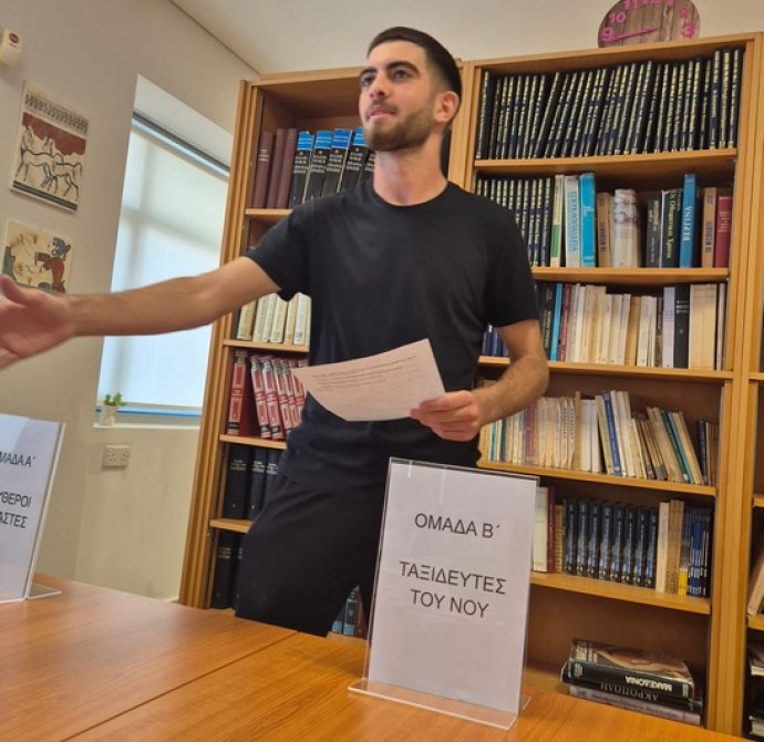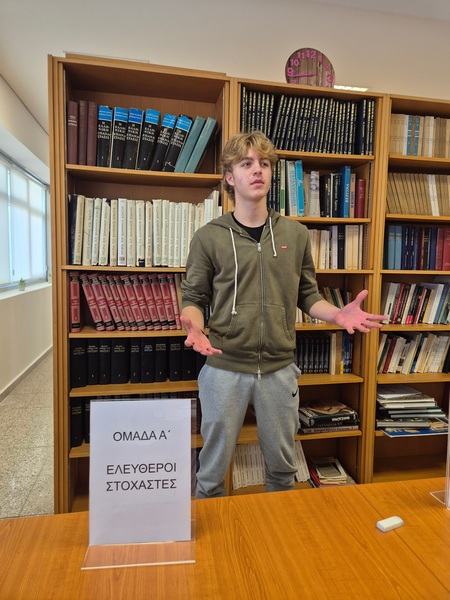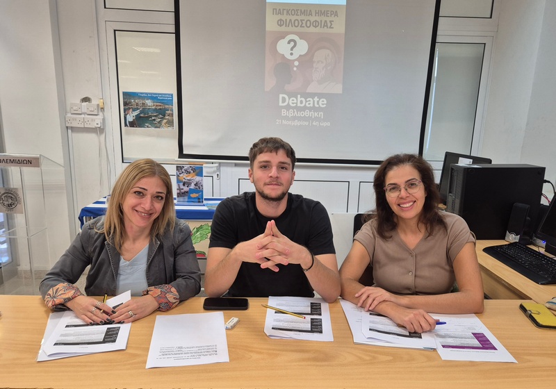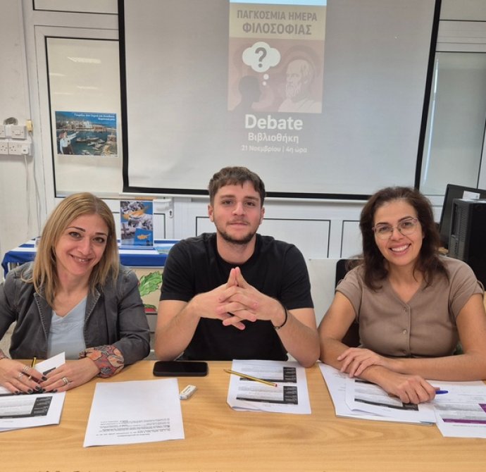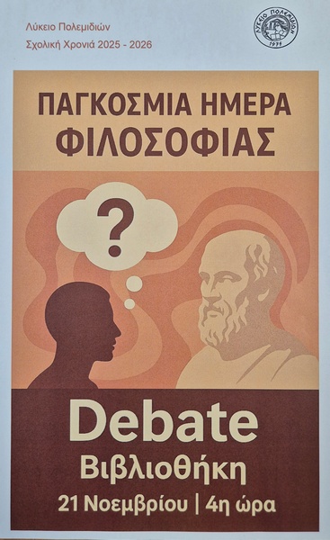 Την Παρασκευή, 21 Νοεμβρίου 2025, Παγκόσμια Μέρα Φιλοσοφίας, η Επιτροπή Βιβλιοθήκης του Λυκείου Πολεμιδιών οργάνωσε Debate με τίτλο «Ο άνθρωπος είναι ελεύθερος ή υποταγμένος σε δυνάμεις που αγνοεί;» Το Debate είχε ως αφόρμηση το ποίημα του Κώστα Καρυωτάκη «Στο άγαλμα της Ελευθερίας που φωτίζει τον κόσμο» και τη ρήση του Ζαν-Ζακ Ρουσσώ «Ο άνθρωπος γεννήθηκε ελεύθερος και παντού βρίσκεται αλυσοδεμένος». Πρωταγωνιστές/τριες ήταν οι μαθητές/τριες του τμήματος Β32, με αντίπαλες ομάδες τους «Ελεύθερους Στοχαστές» (Ομάδα Α΄) και τους «Ταξιδευτές του Νου» (Ομάδα Β’).