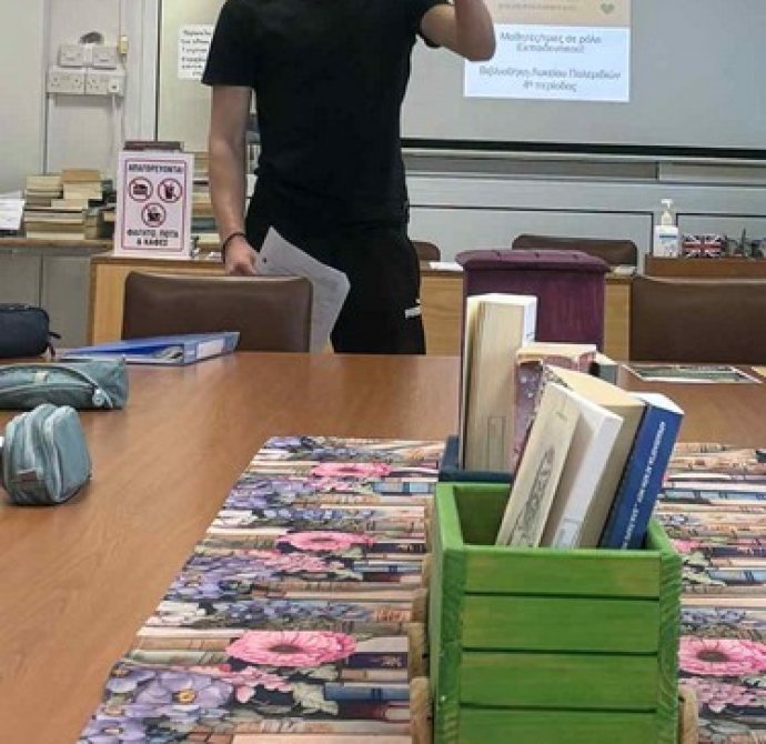Οι μαθητές/τριες του τμήματος Β3.2, πήραν για λίγο τον ρόλο του εκπαιδευτικού, στάθηκαν μπροστά στους συμμαθητές/τριές τους και προσπάθησαν να διδάξουν, μετατρέποντας τη Βιβλιοθήκη σε έναν δημιουργικό χώρο ανταλλαγής γνώσεων και εμπειριών! Με αυτόν τον τρόπο, είχαν την ευκαιρία να κατανοήσουν καλύτερα τις προσπάθειες που καταβάλλει καθημερινά ο/η εκπαιδευτικός, να αντιληφθούν σε βάθος το μέγεθος της ευθύνης και της αγάπης του/της, αλλά και να αντιληφθούν τη δημιουργική ικανοποίηση και χαρά που συνοδεύουν το έργο της διδασκαλίας και της μετάδοσης της γνώσης. Παράλληλα, ένιωσαν πόσο απαιτητική και σημαντική είναι η διδασκαλία, καθώς και η πρόκληση που κρύβει η σωστή καθοδήγηση μιας τάξης.